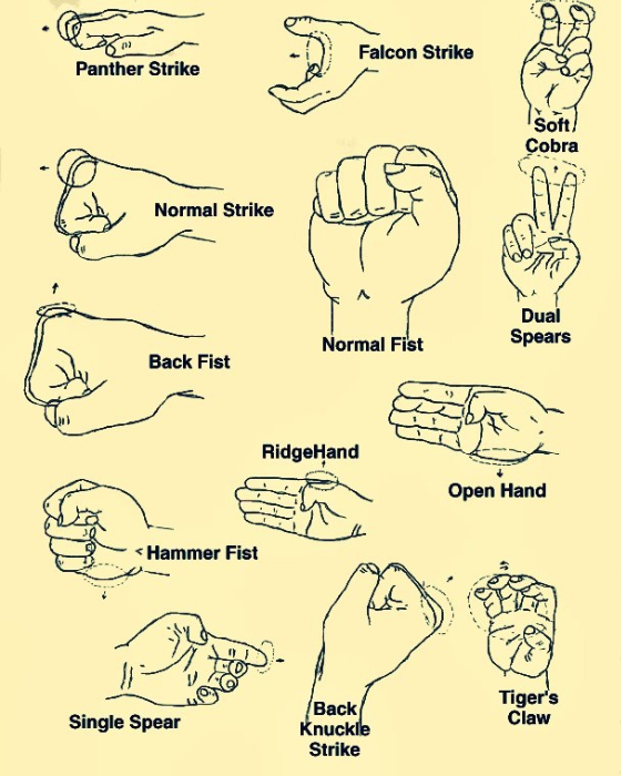 Hiraken zuki - Middle row of knuckles fist